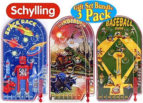 Schylling Classic Pinball Games Space Race, Dinosaurs & Home Run! Gift Set Bundle - 3 Pack
