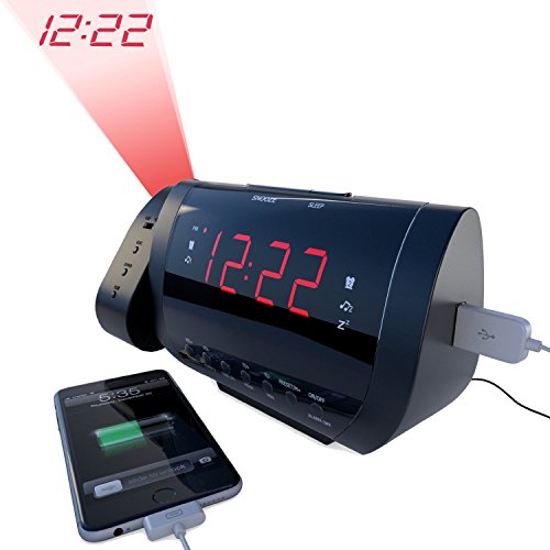 Rated Best Alarm Clock Radio With Time Projection, USB Charger For smartphones and tablets, Large LED Digital Display, Battery Back Up and Dual Alarm For Heavy Sleepers