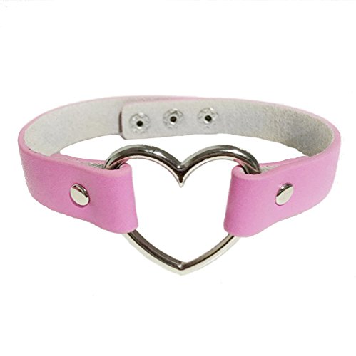 Kamat Girls Love Heart Choker PU Leather Collar Punk Heart Goth Fans Chain Necklace(pink)