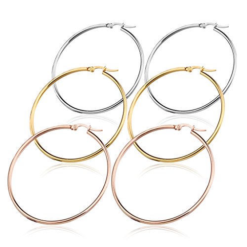 FIBO STEEL 3 Pairs Stainless Steel Large Hoop Earrings Set for Women 50mm