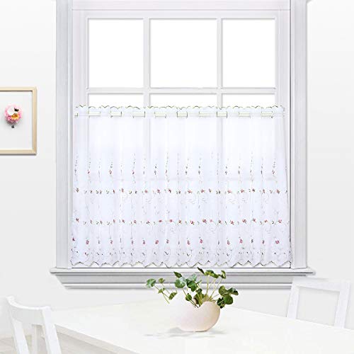 Embroidery Kitchen Tier Curtain, Cafe Curtain, Dining Room Curtain, Sunshine Semi Sheer Valances (Red Bud, 18 x 59 inches (45x150cm))