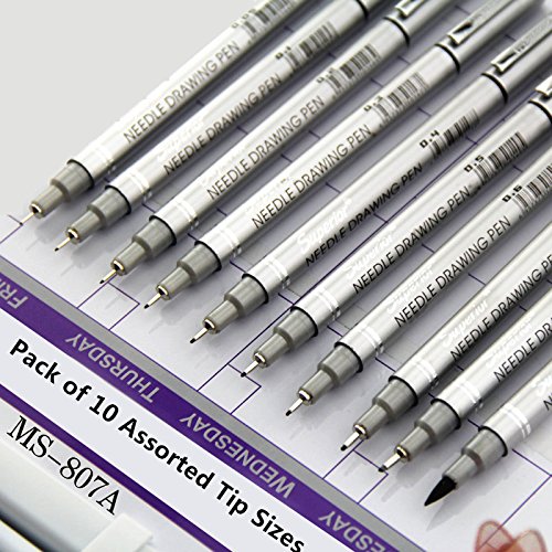 JX Superior MS-807A Needle Drafting Pen,Professional Technical Drawing Pens,Pack of 10 Assorted Tip Sizes,Black Ink