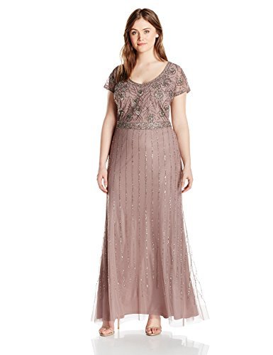 Adrianna Papell Women's Plus-Size Beaded Gown, Stone, 14W