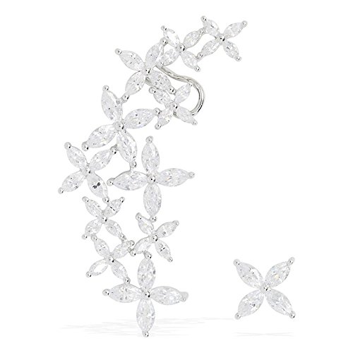 Cubic Zirconia Lilac Flower Cluster Cartilage Ear Wrap Cuff Stud Earrings Silver Tone