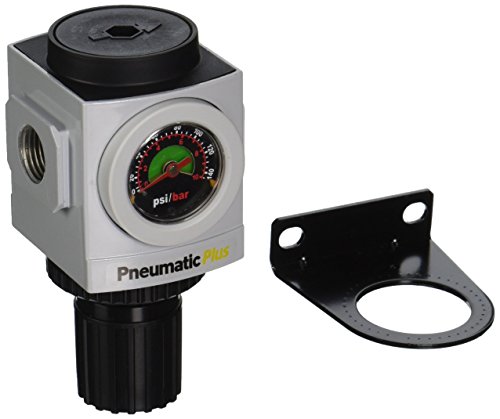PneumaticPlus PPR4-N04BG Air Pressure Regulator, 1/2" NPT with Embedded Gauge and Bracket