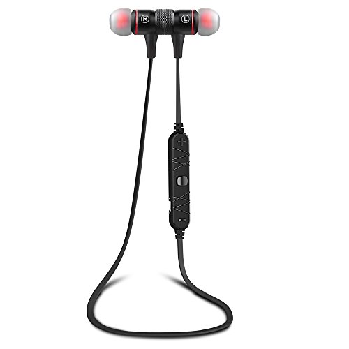 Bluetooth Headphones, Magnet Wearable V4.0 Wireless Hands Free earbuds, Lightweight Sweatproof Bluetooth Stereo Sports Headset Earphones In-Ear Noise Isolating Headphones with Microphone-Black