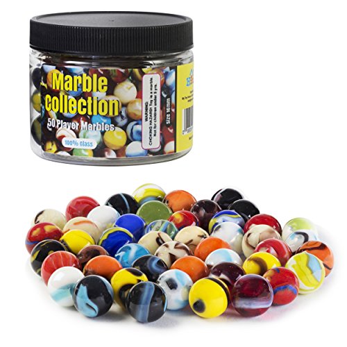 Player Glass Marbles with Marble Jar For Storage, Set of 50, 16mm, Assorted Colors