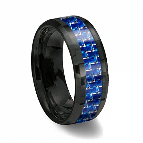 Gnex 8mm Black Tungsten Ring with Blue & White Line Carbon Fiber Wedding Band Size 6-13 Half Size