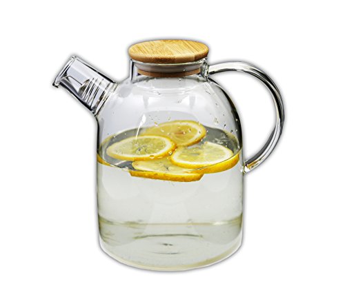 Hiware 60 Oz Glass Water Pitcher with Natural Bamboo Wood Lid - Large Capacity Water Tea Pot with Safe Filter Iced Tea Pitcher
