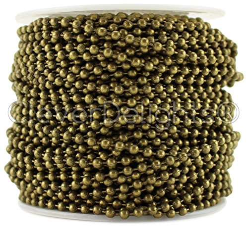 CleverDelights Ball Chain Roll - 30 Feet - Antique Bronze Color - 2.4mm Ball - #3 Size