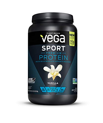 Vega Sport Premium Protein, Vanilla, 20 Servings, 29.2 Ounce, Plant-Based Vegan Protein Powder, BCAAs, Amino Acid, tart cherry, Non Whey, Gluten Free, Non GMO (Packaging May Vary)