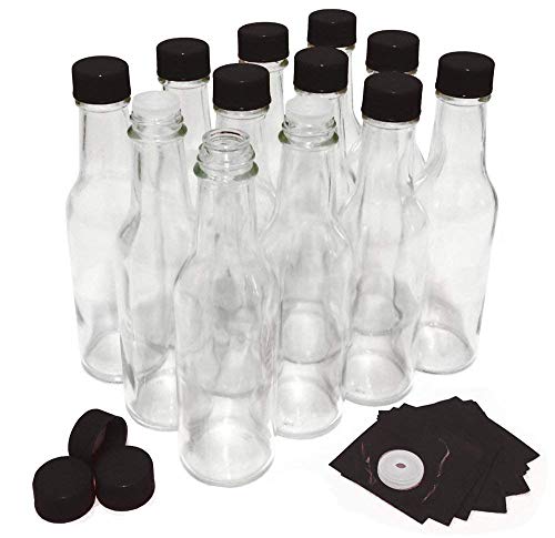 Hot Sauce Bottles with Black Caps & Shrink Bands, 5 Oz - Case of 12