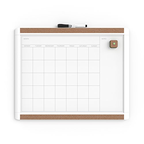 U Brands Pin-It Magnetic Dry Erase Calendar Board, 20 x 16 Inches, White Frame