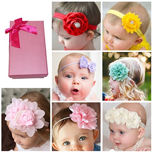 Elesa Miracle Hair Accessories Lovely Baby Girl's Gift Box with Bow Flower Hair Headband (7 different style)
