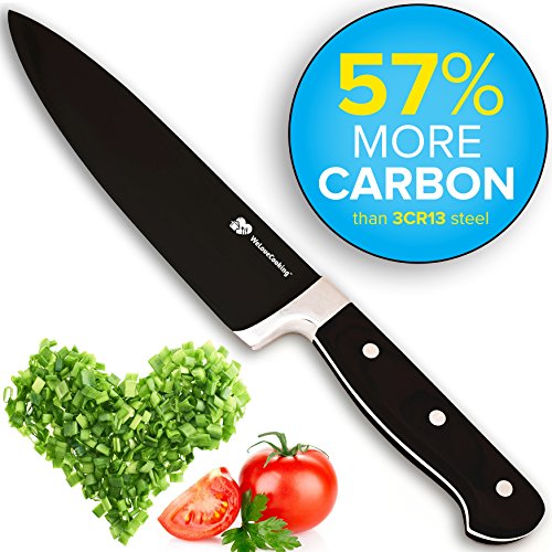 Premium BlackLine(TM) Forged 8" Chef Knife, Stays Sharp Longer with 57% More Carbon, with Artistic Black Blade Coating