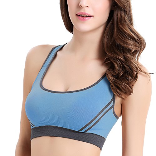 Women's Padded Sports Bras Push Up Seamless Fitness Workout Yoga Bra Color Blue Size M