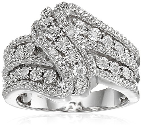 Classic Twist with White Diamond Sterling Silver Ring (1/10cttw, I-J Color, I2-I3 Clarity)