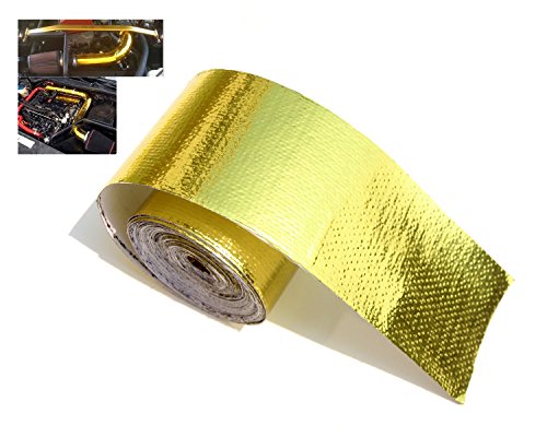 SUNDELY Reflective Golden Exhaust Manifold Pipe Heat Protection Wrap Tape 1.5" X 15ft (3.8cm x 450cm) with Self Adhesive Backing