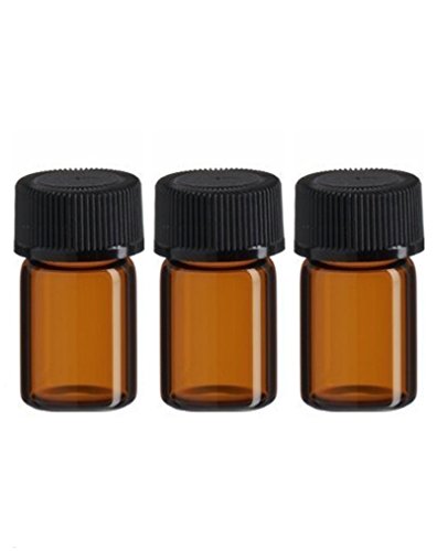 TOPWEL 24pcs 3 ml Amber Glass Essential Oil Bottle with Orifice Reducer and cap (24)