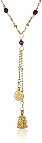 Satya Jewelry Red Garnet Lotus and Tree of Life Lariat Y-Shaped Necklace (16-Inch)