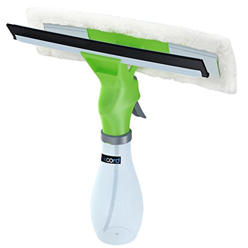 Akcord All-in-one Window Squeegee, 10" - with Microfiber Scrubber and Spray Bottle