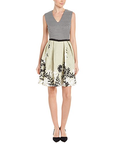 Taylor Dresses Women's V Neck Mixed Print Dress Fit and Flae, Celery Ivory/Black, 12