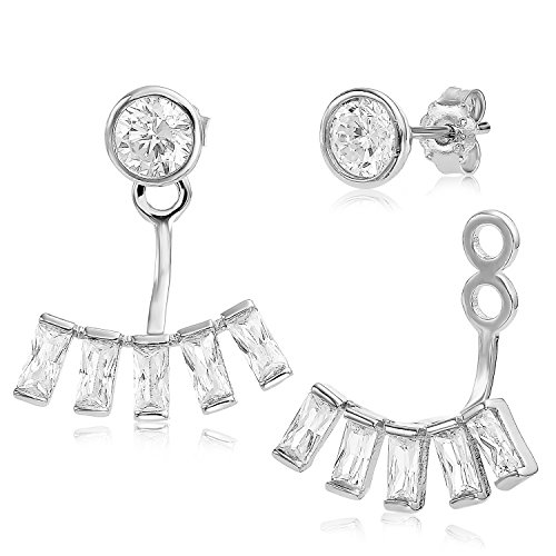 Ear Jacket 2 in 1 White Rhodium Plated-Sterling Silver, CZ AAA Quality Stud & Jacket Earrings Set