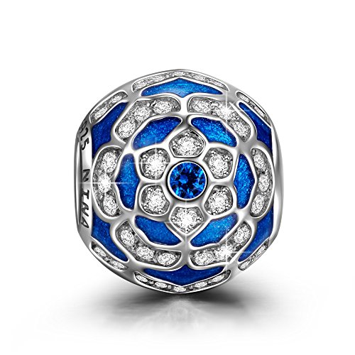 NinaQueen"Blue Ripple" 925 Sterling Silver Bead Charms for Bracelet Necklace Jewelry Christmas Gifts For Women Birthday Anniversary Gifts For Her Teen Girls Wife Mom Daughter