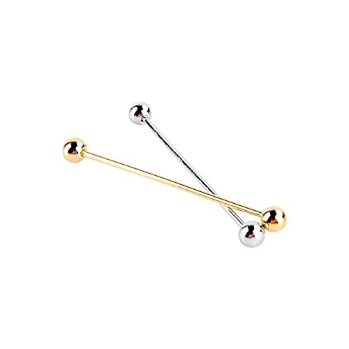 Yosoo Men Silver Gold Plated Tone Steel Collar Tie Pin Stud Barbell Bar Clip Clasp 6CM Brooch 4 Pcs