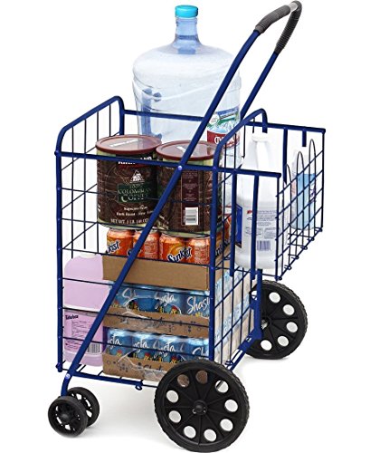 MOD Complete MDC77037B Portable Double Basket Flat Folding Shopping Cart with Swivel Wheels, Blue