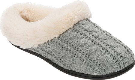 Dearfoams Womens Cable Knit Clog Slipper with Plush Cuff,Light Heather Grey,US