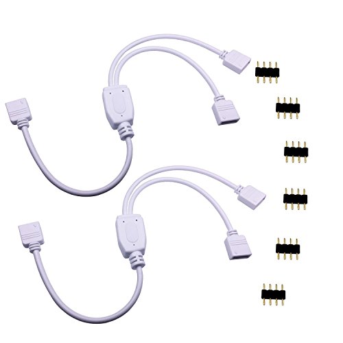 TronicsPros 2 Packs 4 Pin Splitter Cable LED Strip Connector 2 Way Splitter Y Splitter for One to Two 5050 3528 RGB LED Light Strip with 6 Male 4 Pin Plugs -30cm/12inch(1 to 2 Splitter Cable/ 2 Pack)