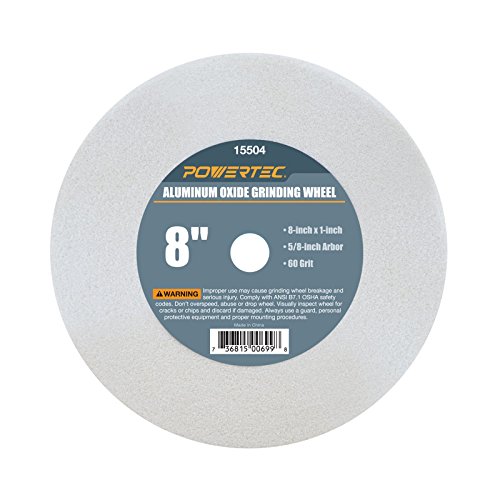 POWERTEC 15504 White Aluminum Oxide Grinding Wheel, 8-Inch by 1-Inch, 5/8-Inch Arbor, 60 Grit