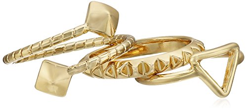 ABS By Allen Schwartz Black and White Gold-Plated Three-Piece Pyramid Ring Set, Size 7