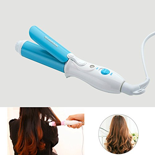 Oumers Mini Hair Curling Irons, Woman Hair Curler Curling Iron Wands, Girl Ceramic Curling Wand, Home Appliances Hair Roller Styling Tools, 110-220V Blue