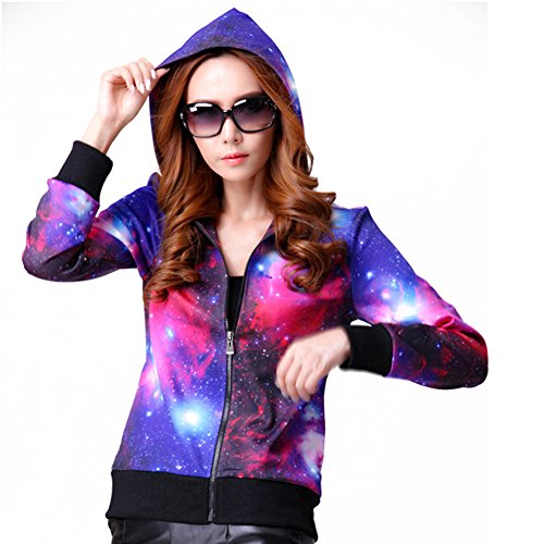 Women's Galaxy Space Print Active Soft Zip up Hoodies Hooded Autumn Winter (S) Purple