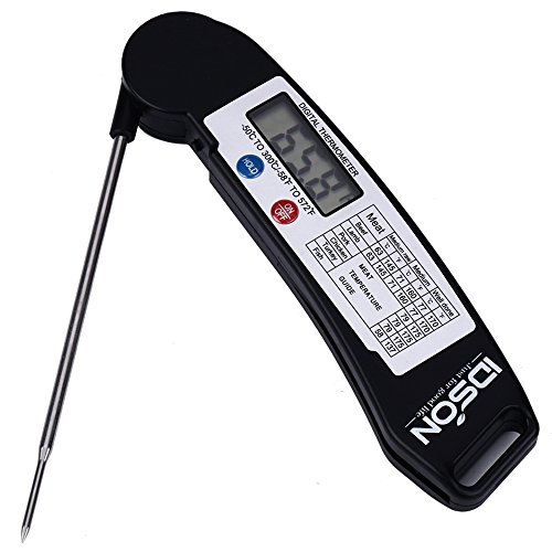 Idson Lcd Digital Instant Read Meat Thermometer for BBQ Cooking,with Collapsible Internal Probe and Food Temperature Chart,Black,Ultra Fast