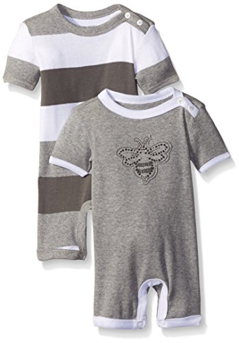Burt's Bees Baby Baby Set Of 2 Bee and Stripe Organic Shortalls, Heather Grey, 6-9 Months
