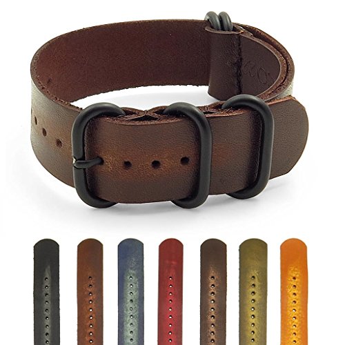 StrapsCo Distressed Vintage Style Leather Watch Band Strap w/Black Rings