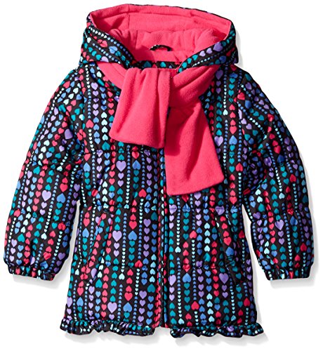 London Fog Girls' Print Ruffle Puffer Coat with Scarf