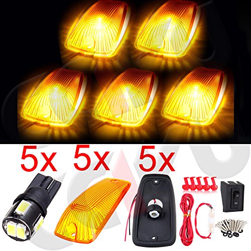 cciyu 5 Pack Amber Top Cab Roof Running Light Marker Lens with Base Housing +5x 6-5730SMD White Led Light +Wiring pack Replacement fit for 1988-2000 GMC C/K