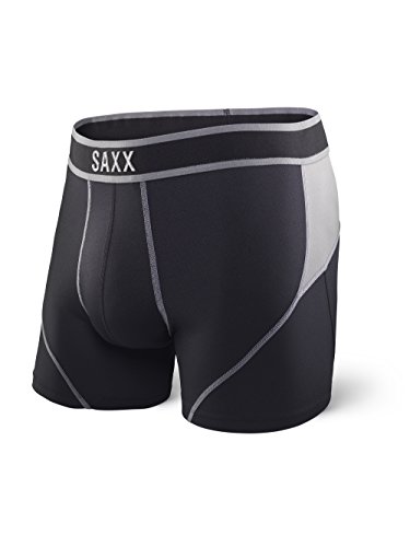 Saxx Underwear Men's Boxer Briefs – Kinetic Men’s Underwear – Boxer Briefs with Built-in Ballpark Pouch Support – Semi-Compression Underwear for Men,Black/Steel,Large