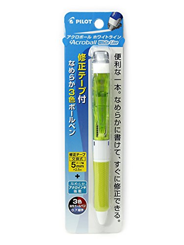 Pilot Acroball White Line 3 Color 0.7mm Ballpoint Pen with Correction Tape, Clear/Light Green (BKAW-60F-CLG)