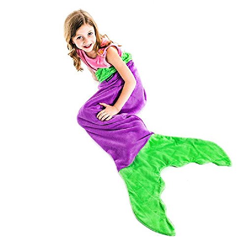 The Original Blankie Tails Mermaid Tail Blanket (Youth Size), Purple/Seafoam