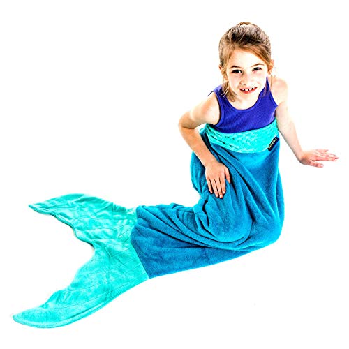The Original Blankie Tails Mermaid Tail Blanket (Youth Size), Ocean Blue/Aqua
