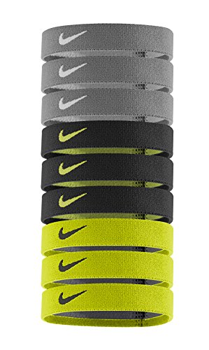 Nike Sport Hairbands (9pk, One Size Fits Most, Wolf Grey/Black/Volt)