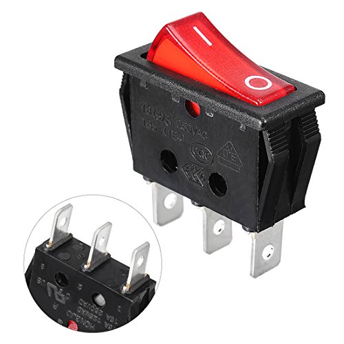 uxcell AC 250V 16A Red Light illuminated ON/OFF Rocker Switch SPST 5Pcs