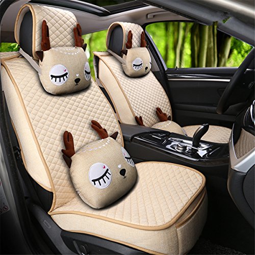 Empire-1503 Linen/Flax Car Seat Cushions 11 pcs Set - Anti-skidding with Silicone Gel Dots Universal Fit Seat Covers for Audi Jeep Ford Mercedes-Benz and 98% Other Types of Cars