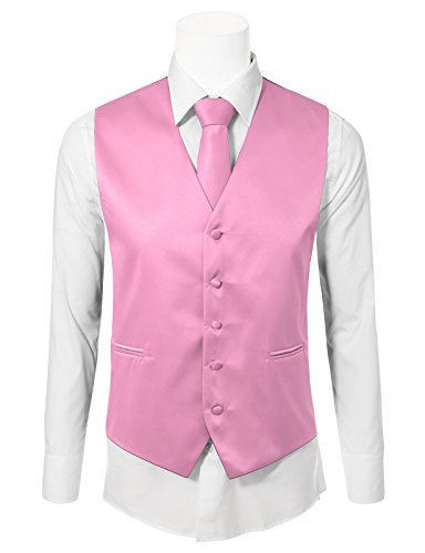 JD Apparel Men's 3 Pieces Tie Solid Formal Tuxedo Vest Tie 3XLarge Pink