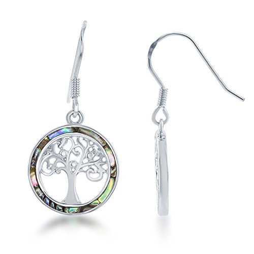 Beaux Bijoux Sterling Silver and Gold Tone Created Opal, MOP or Abalone Tree of Life Circle Earrings